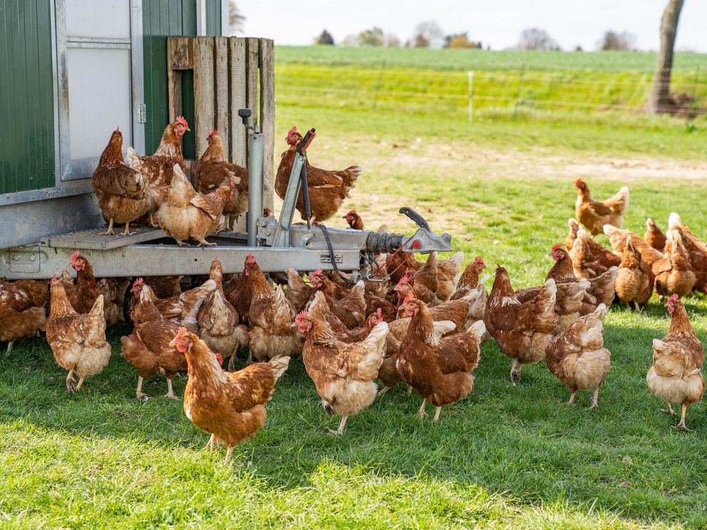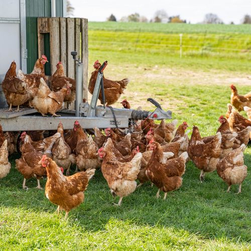 Unsere Freilandhühner leben auf der Wiese hinter unserem Rundstall in einem sogenannten Hühnermobil. Sie können 365 Tage im Jahr nach Draußen und im Grünen kratzen und scharren. Besonders durch den im Gras enthaltenen Farbstoff Karotin lagern die Hühner durch das Grasen im Grünen mehr davon ein. Folglich ist die Ei-Farbe intensiv gelb und der Geschmack ist äußerst köstlich.